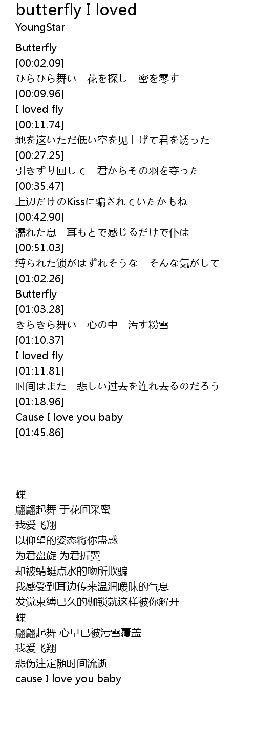 | [00:03.15] | ひらひら舞い 花を探し 密を零す |