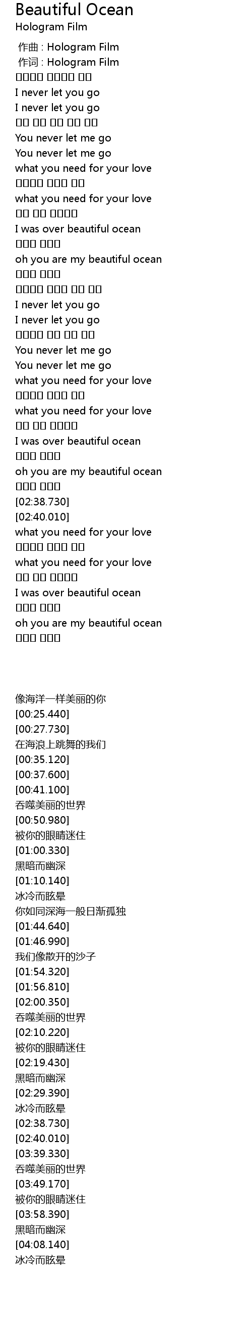 | [00:20.760] | 바다처럼 아름다운 너를 |