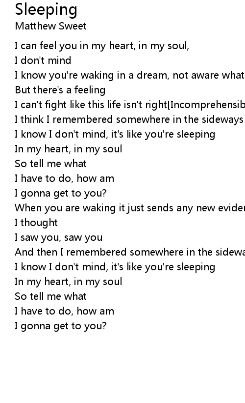 I know I don't mind, it's like you're sleeping |