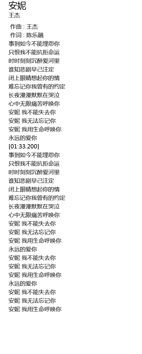 | [03:17.360] | 安妮 我不能失去你 |