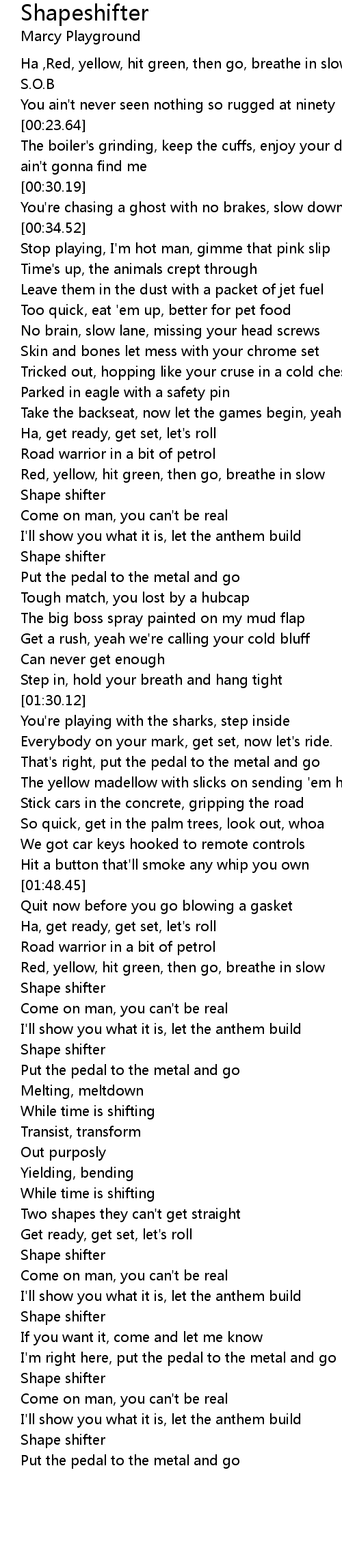 Ha ,Red, yellow, hit green, then go, breathe in slow |