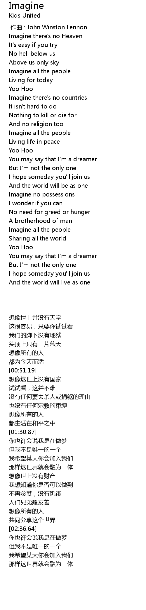 | [00:00.00] | zuo qu : John Winston Lennon |
