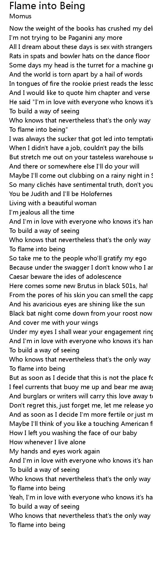 | Song | Flame into Being |