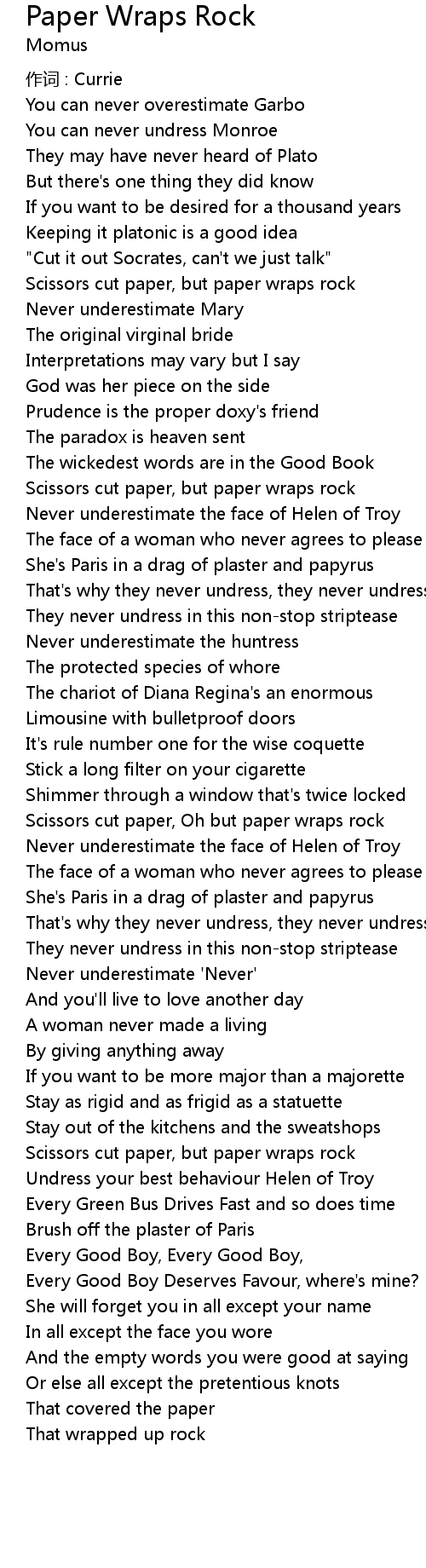 | Song | Paper Wraps Rock |