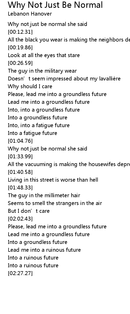 | [01:29.91] | Why not just be normal she said |