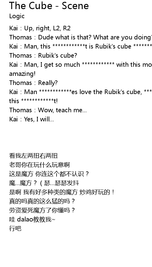| [00:21.040] | Kai:Man ************es love the Rubik's cube, ************es love this ************t! |