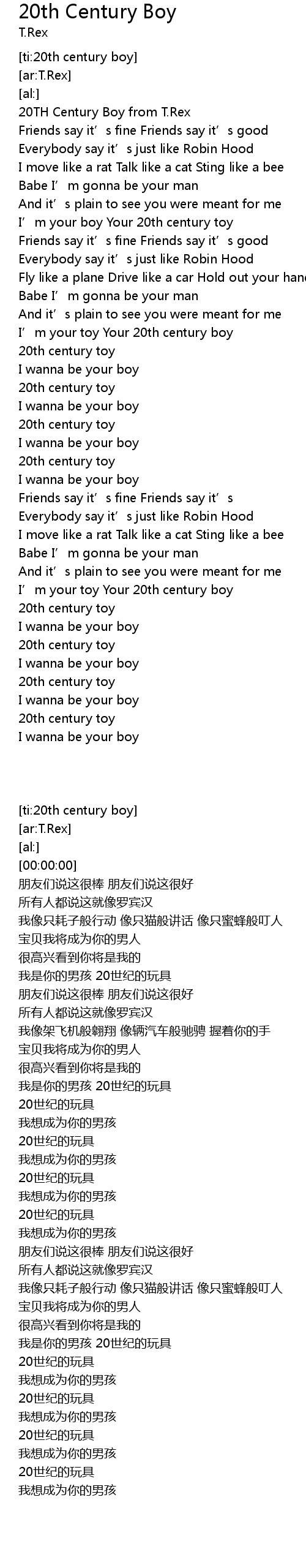 | [00:00:00] | 20TH Century Boy from T. Rex |