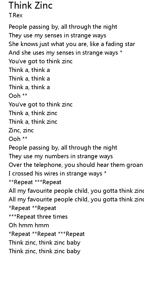 All my favourite people child, you gotta think zinc |