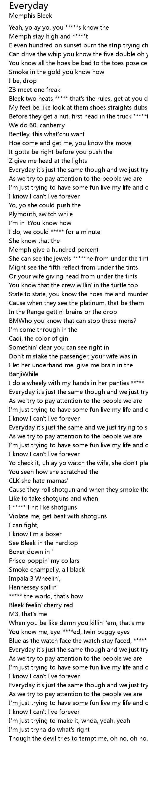 Everyday it's just the same though and we just trying to see tomorrow |