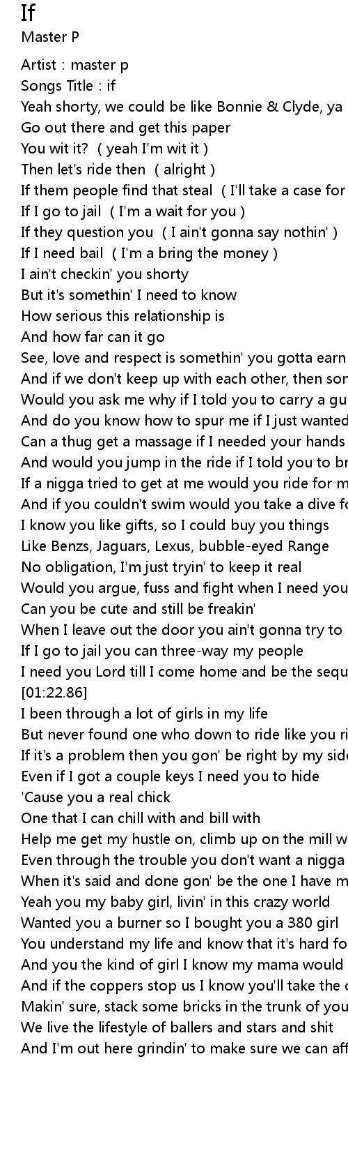 | [00:01.61] | Artist: master p |