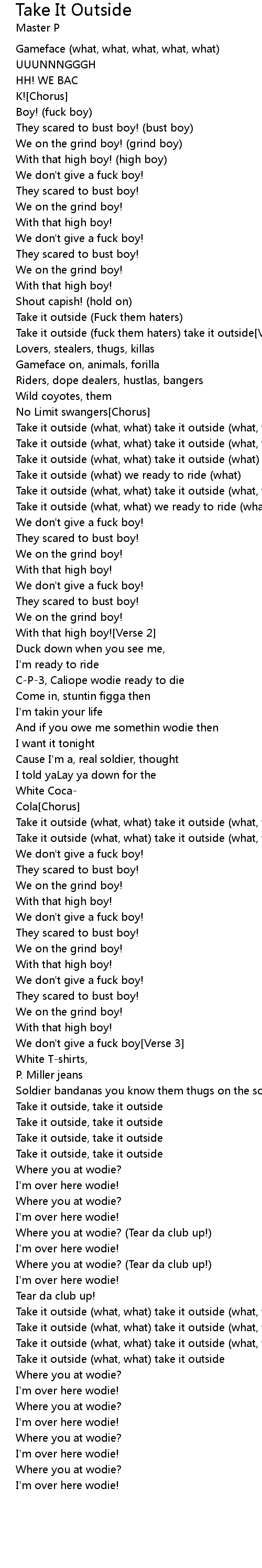 | Take it outside (what, what) take it outside (what, what) | |