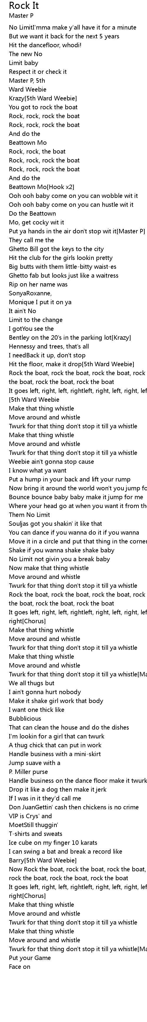 | Twurk for that thing don't stop it till ya whistle[Master P] | |