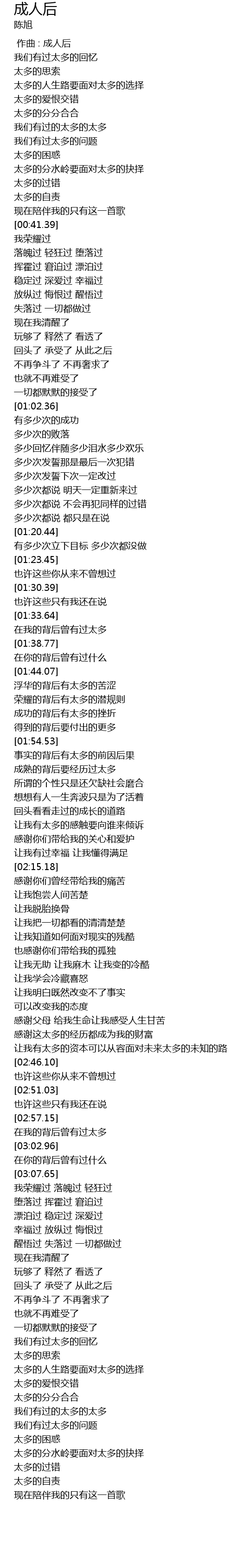 | [01:57.41] | 成熟的背后要经历过太多 |