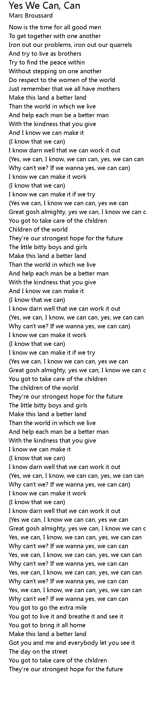 (Yes we can, I know we can can, yes we can |