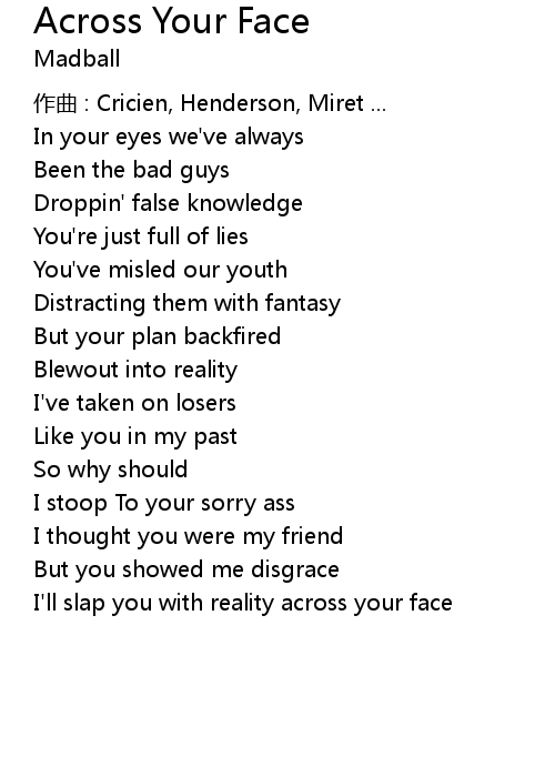 | Song | Across Your Face |