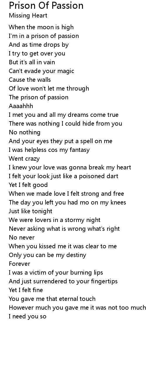 I'm in a prison of passion |