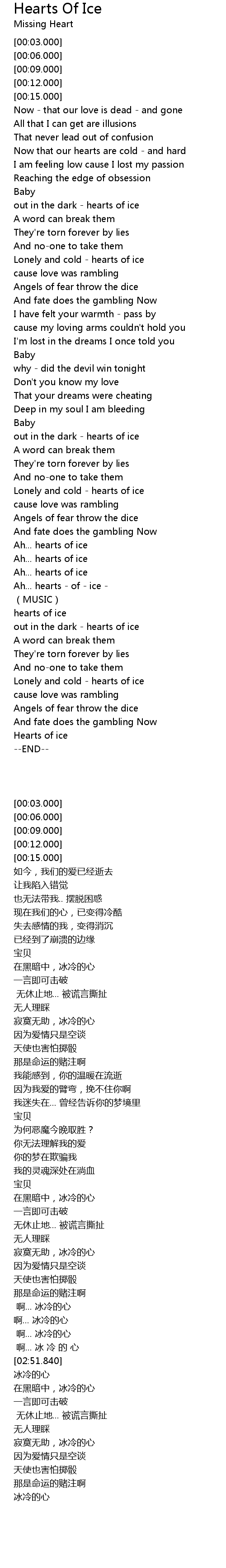 | [03:34.020] | Hearts of ice |