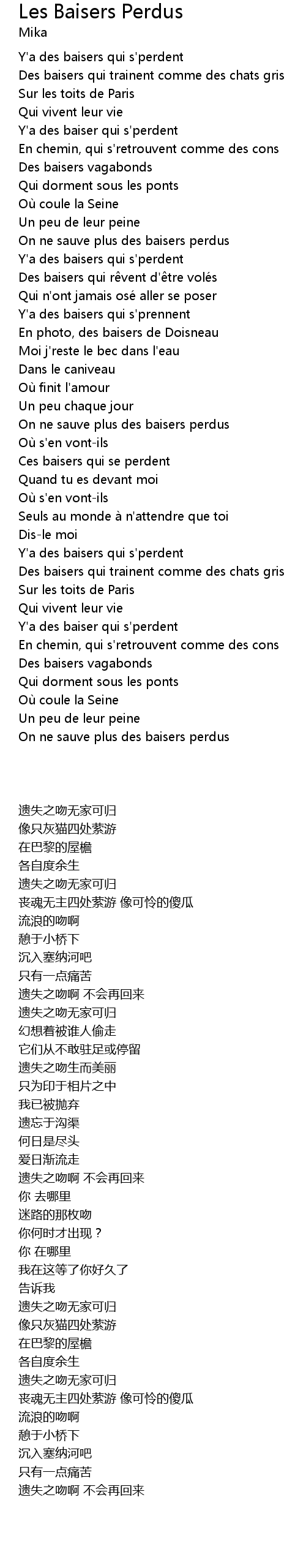 | [02:25.88] | On ne sauve plus des baisers perdus |