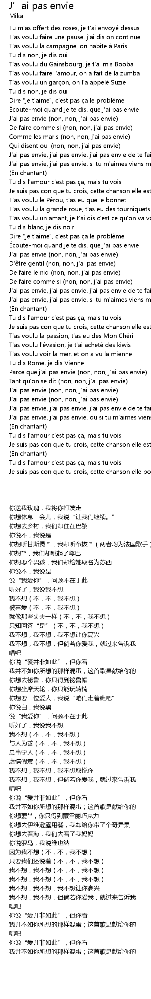 | [02:25.31] | J' ai pas envie non, non, j' ai pas envie |