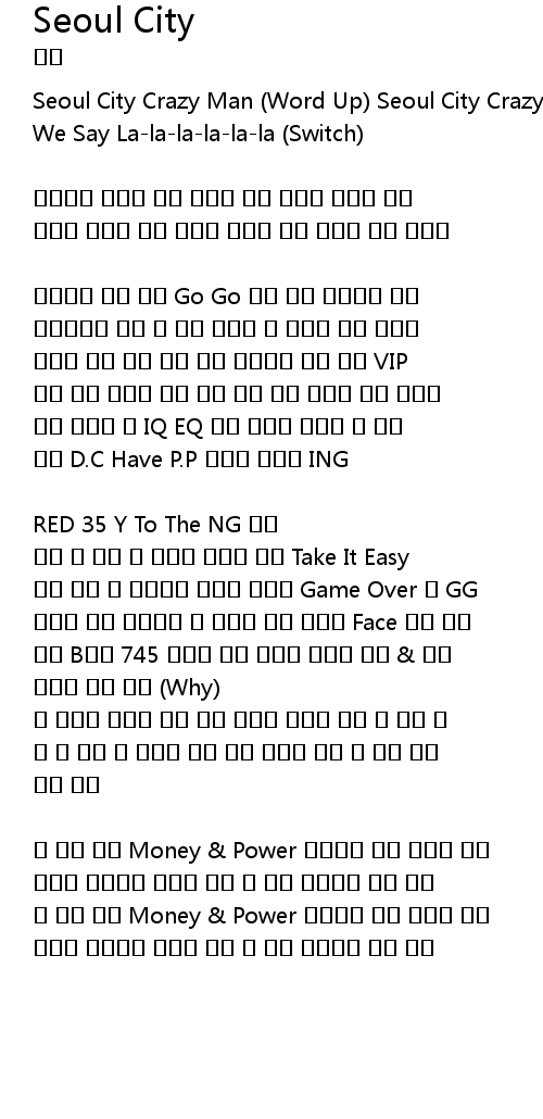 Seoul City Crazy Man (Word Up) Seoul City Crazy Girl (Word Up) Seoul City 미친 We Say La-la-la-la-la-la (Switch) |