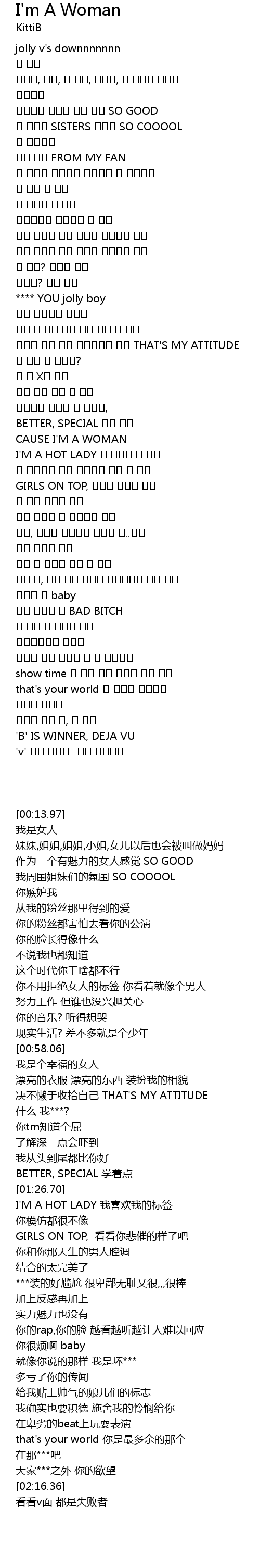 | [01:26.70] | CAUSE I'M A WOMAN |