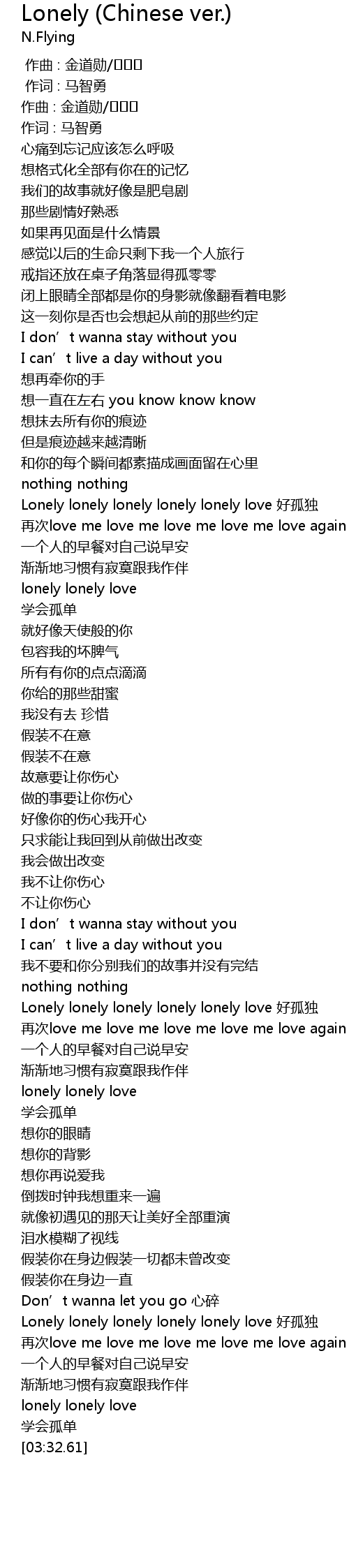 | [03:03.23] | Lonely lonely lonely lonely lonely love hao gu du |