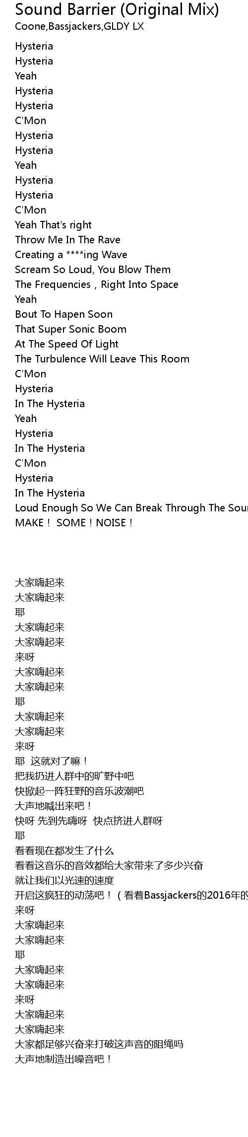 | [02:15.57] | Loud Enough So We Can Break Through The Sound SoundBarrier |