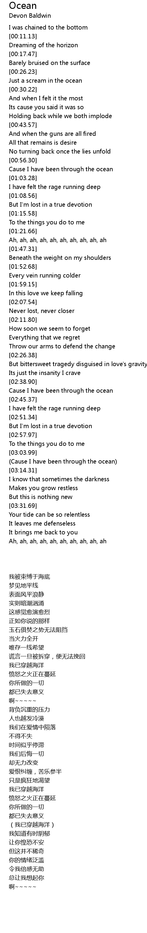 (Cause I have been through the ocean) |