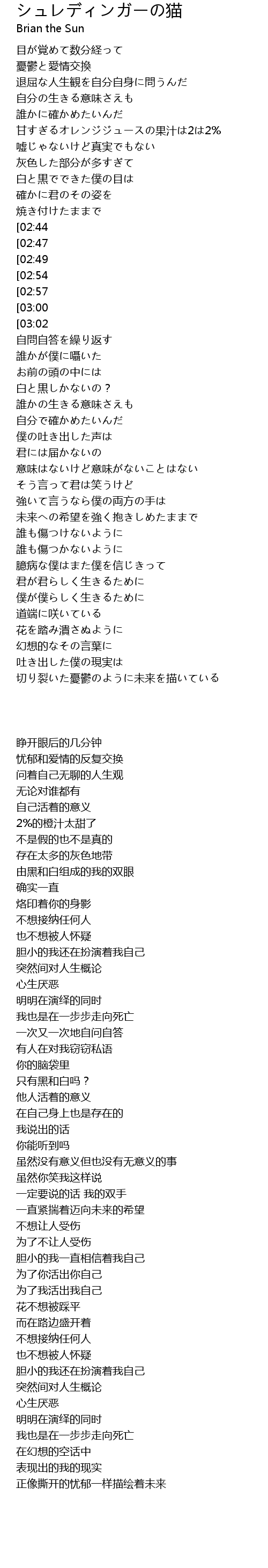 | Song | シュレディンガーの猫 |