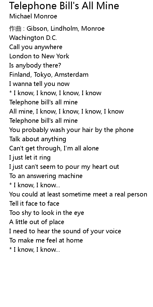 | Telephone bill' s all mine | |