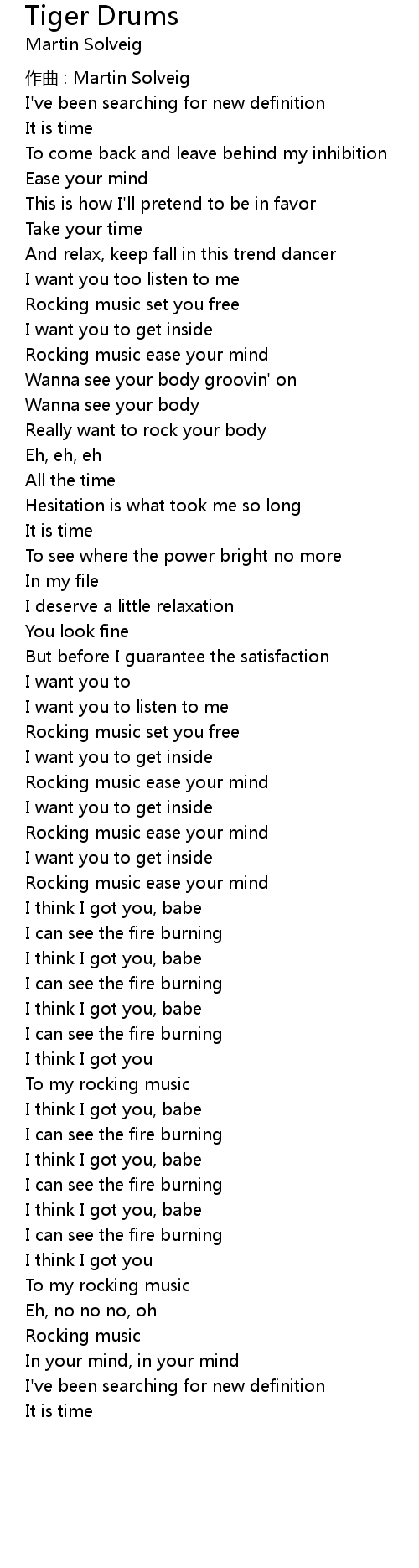 | Song | Tiger Drums |
