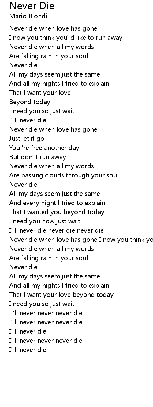 Never die when all my words |