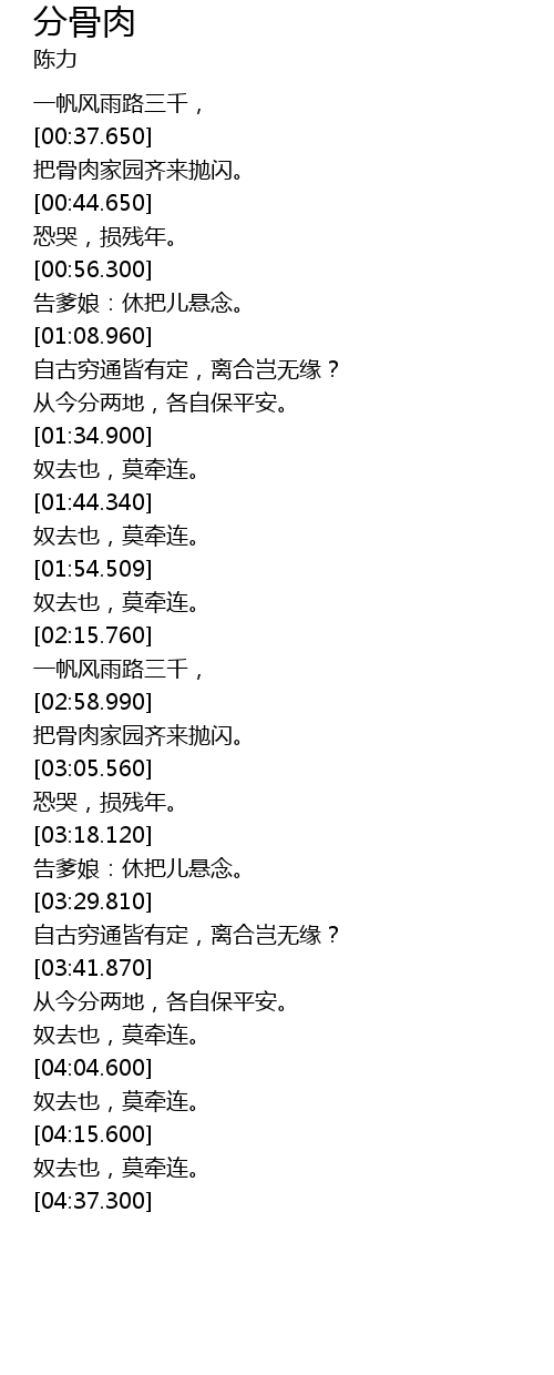 | [03:56.560] | 奴去也,莫牵连。 |