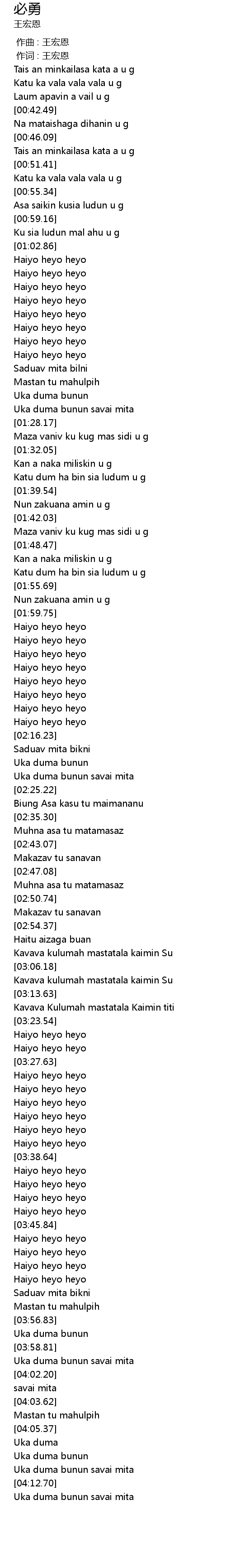 | [03:14.56] | Kavava Kulumah mastatala Kaimin titi |
