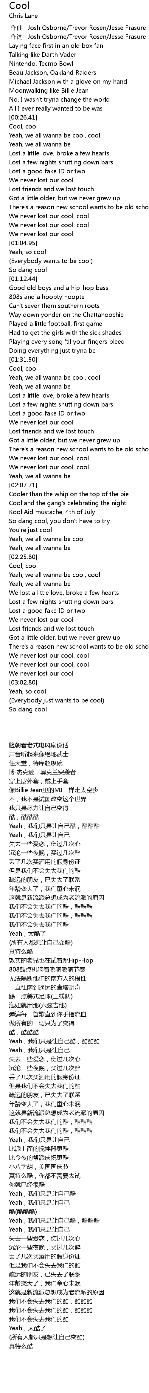 | [00:30.16] | Yeah, we all wanna be cool, cool |