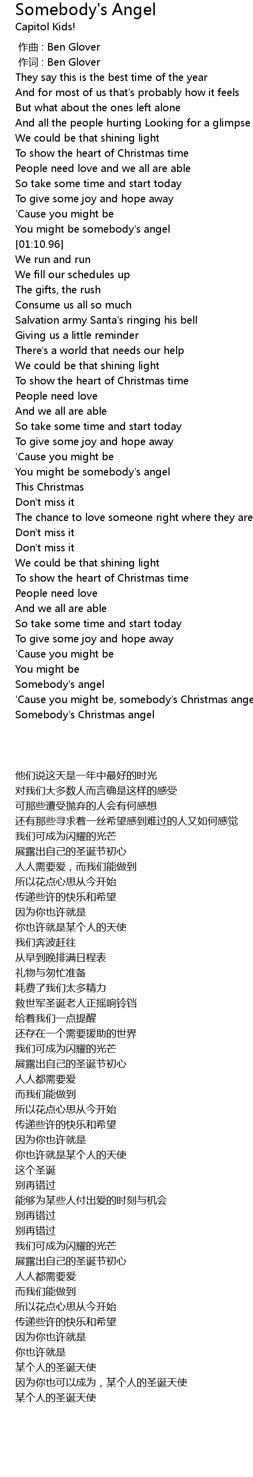 | [02:58.01] | 'Cause you might be, somebody's Christmas angel |