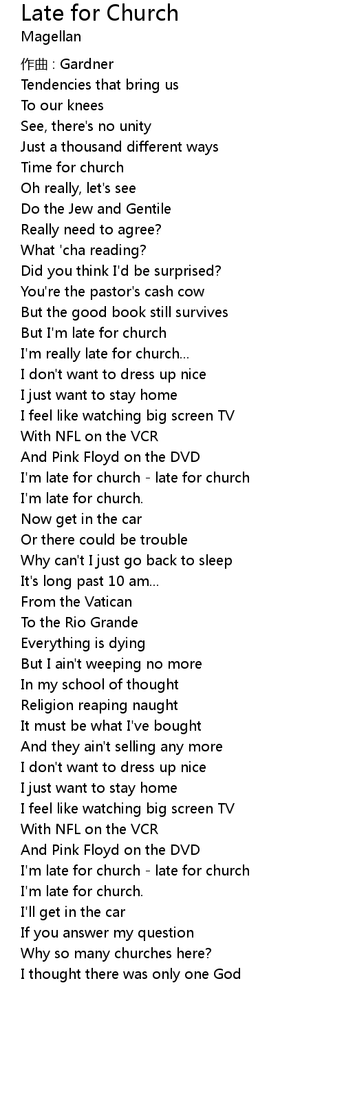 | But I' m late for church | |