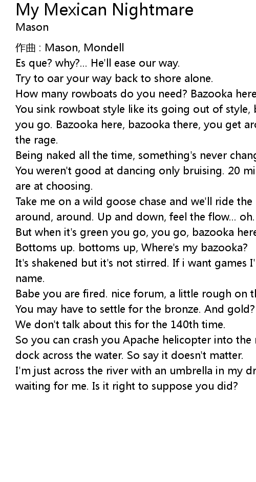 | Song | My Mexican Nightmare |