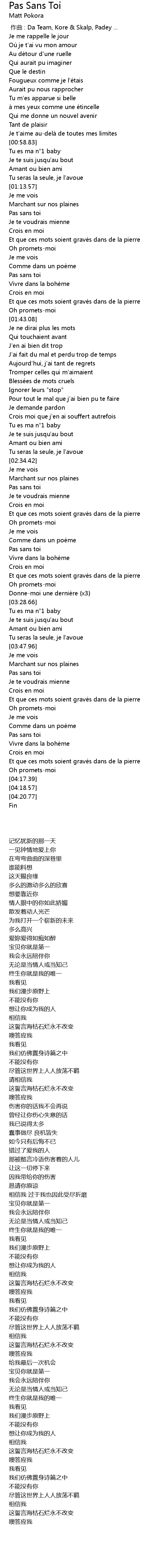 | [04:06.97] | Pas sans toi |