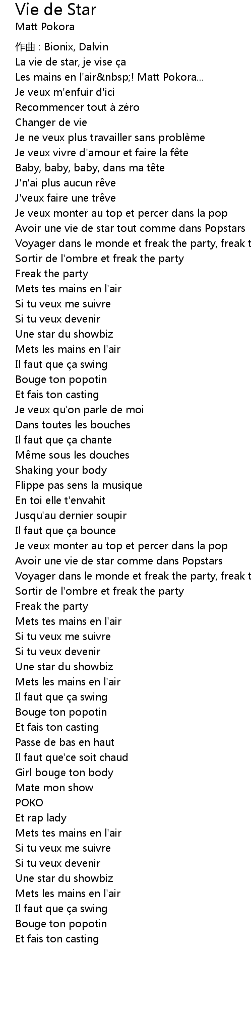 | Song | Vie de Star |