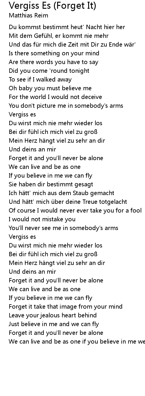 | Song | Vergiss Es (Forget It) |