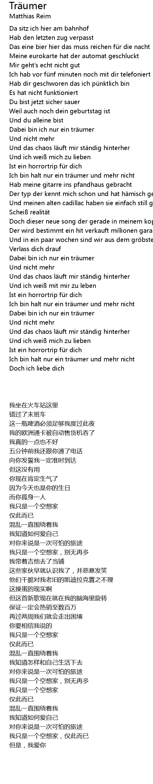 | [02:33.47] | Ich bin halt nur ein tr umer und mehr nicht |