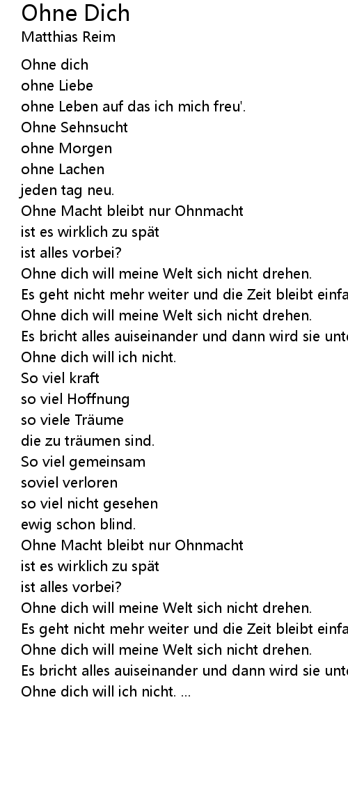 | Ohne dich will meine Welt sich nicht drehen. | |