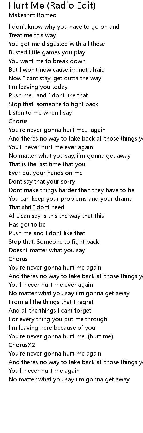 You'll never hurt me ever again |