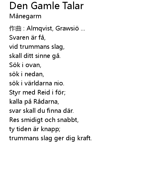 | Song | Den Gamle Talar |