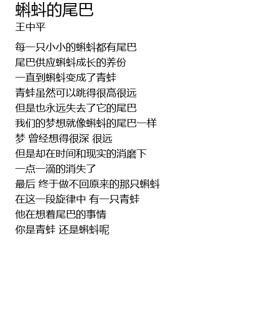 | [00:50.39] | 最后 终于做不回原来的那只蝌蚪 |