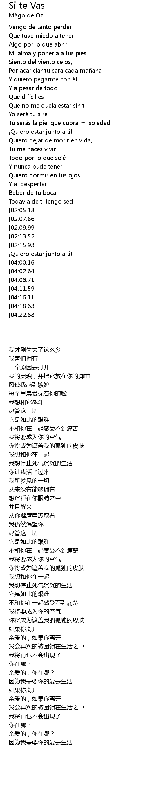 | [04:34.76][04:02.64] | Mi amor, si tu te vas |