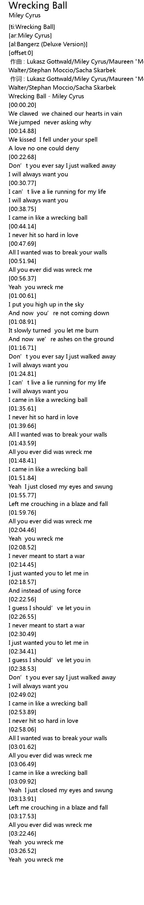 | [ti:Wrecking Ball] | |