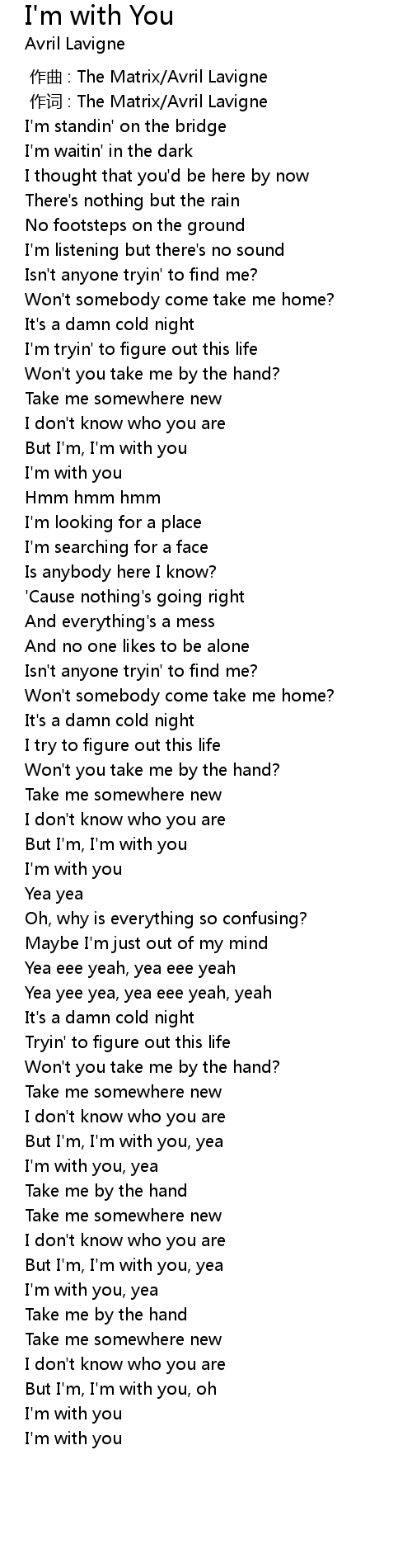 | [00:00.00] | 作曲 : The Matrix/Avril Lavigne |