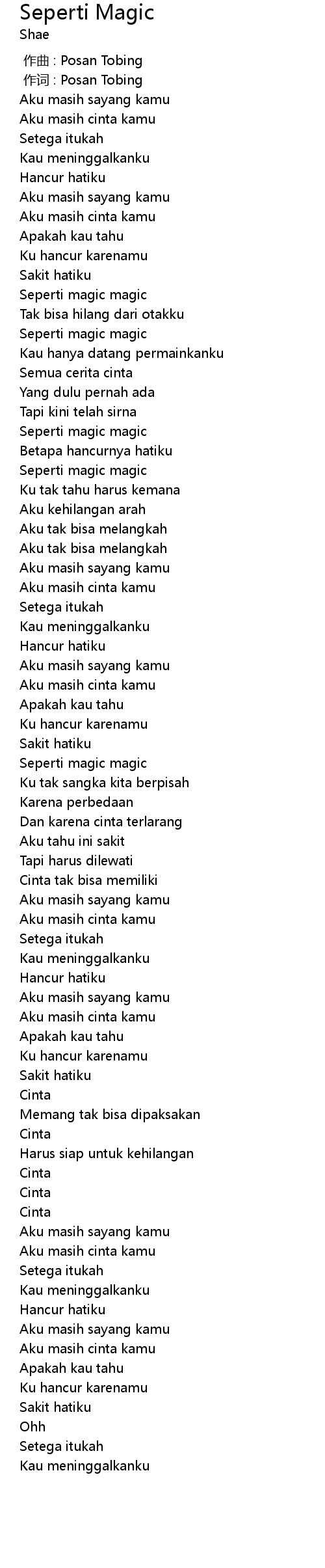 | [00:01.00] | 作词 : Posan Tobing |